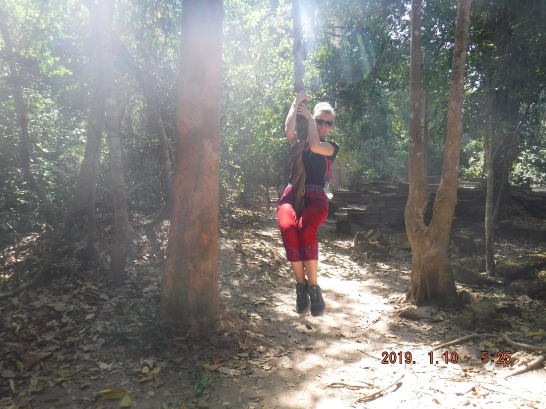 We headed straight onto the long route once we reached the temples, most look very similar but are much bigger than you think and it’s quite possible to get lost in them. We even found a swinging vine to have a go on, which was incredible hanging from the canopy of the trees.