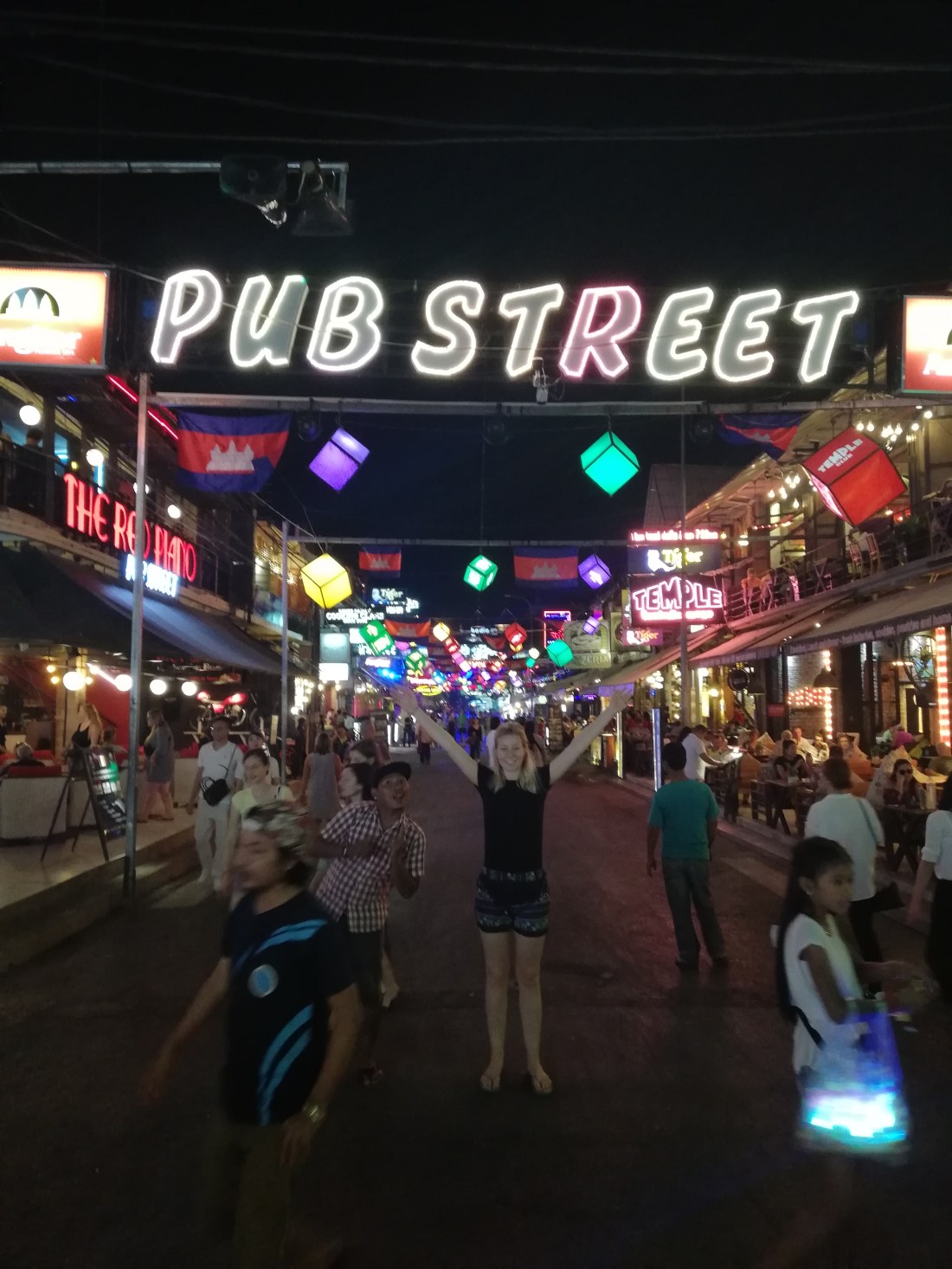 So last night we headed to ‘pub street’ the main stretch here but it’s pretty westernised, lots of beggers, stands, more roasted insects, I have just got used to the cooked insects with a stick shoved through them but last night I got the shock of my life as I walked by a stall and there was a young girl, no more than 6, with 2 live tarantulas in her hands.😫 David thought my over reaction was hilarious and kept looking for her again all night.